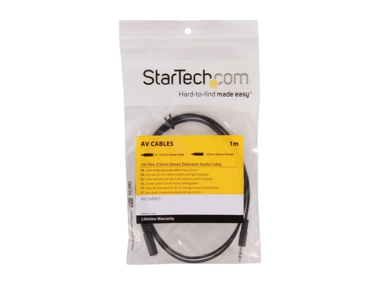 StarTech.com MU1MMFS 0.3" Slim 3.5mm Stereo Extension Audio Cable Male to Female