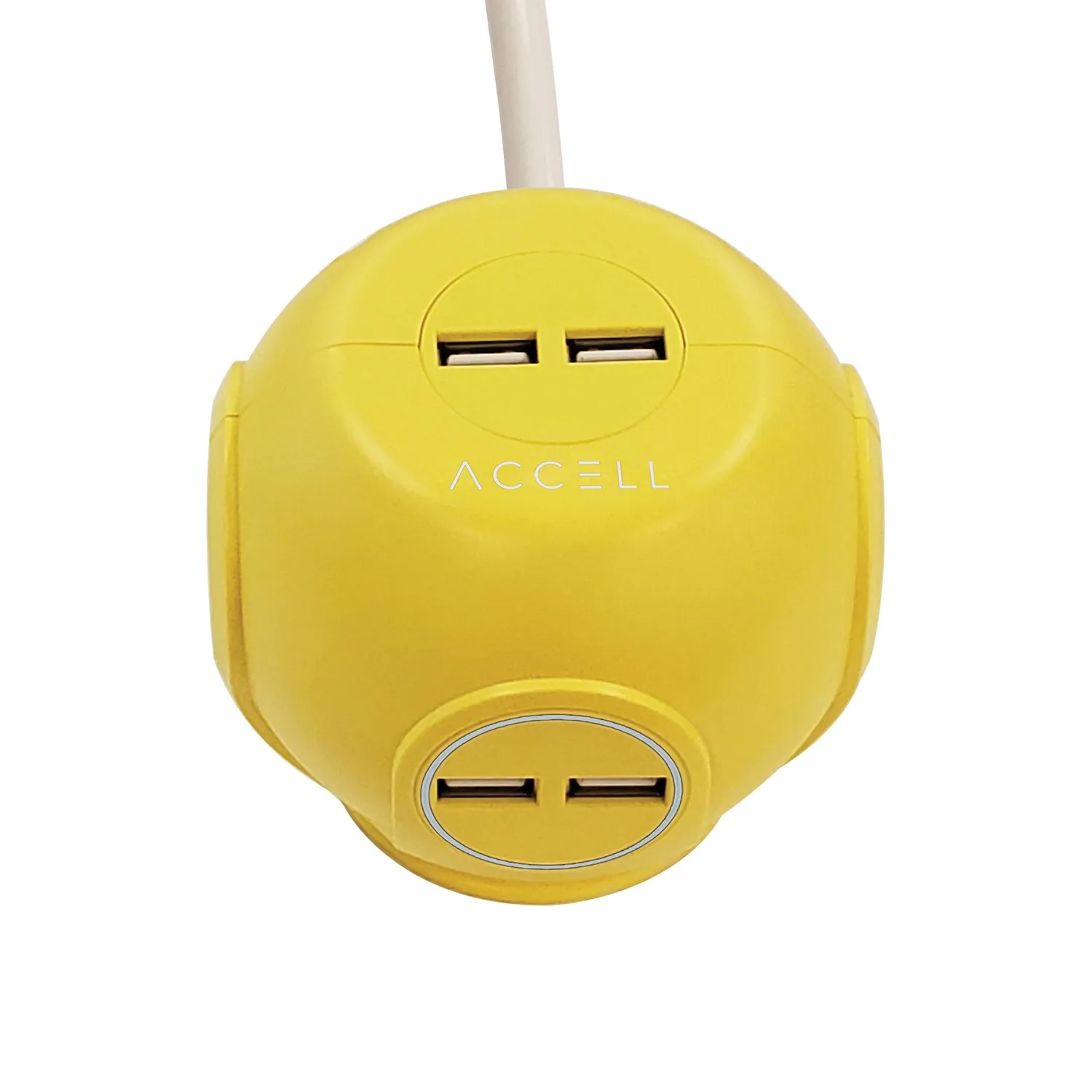 Accell D080B-049E Surge Protector With Usb And 6ft Cord Yellow
