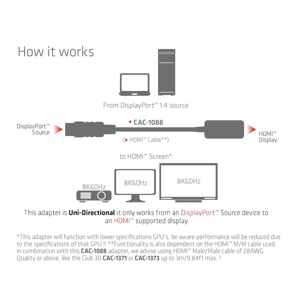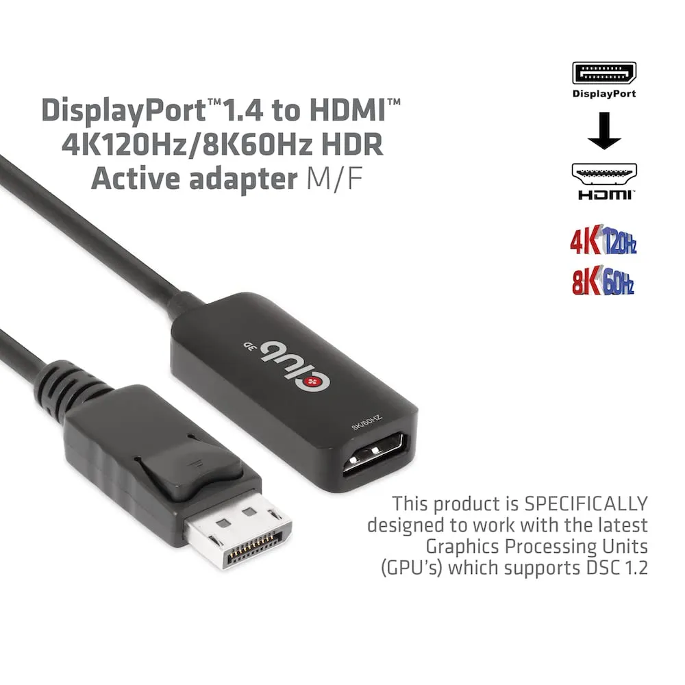 Club CAC-1088 Active Displayport 1.4 To Hdmi Mf Converter For Hdr
