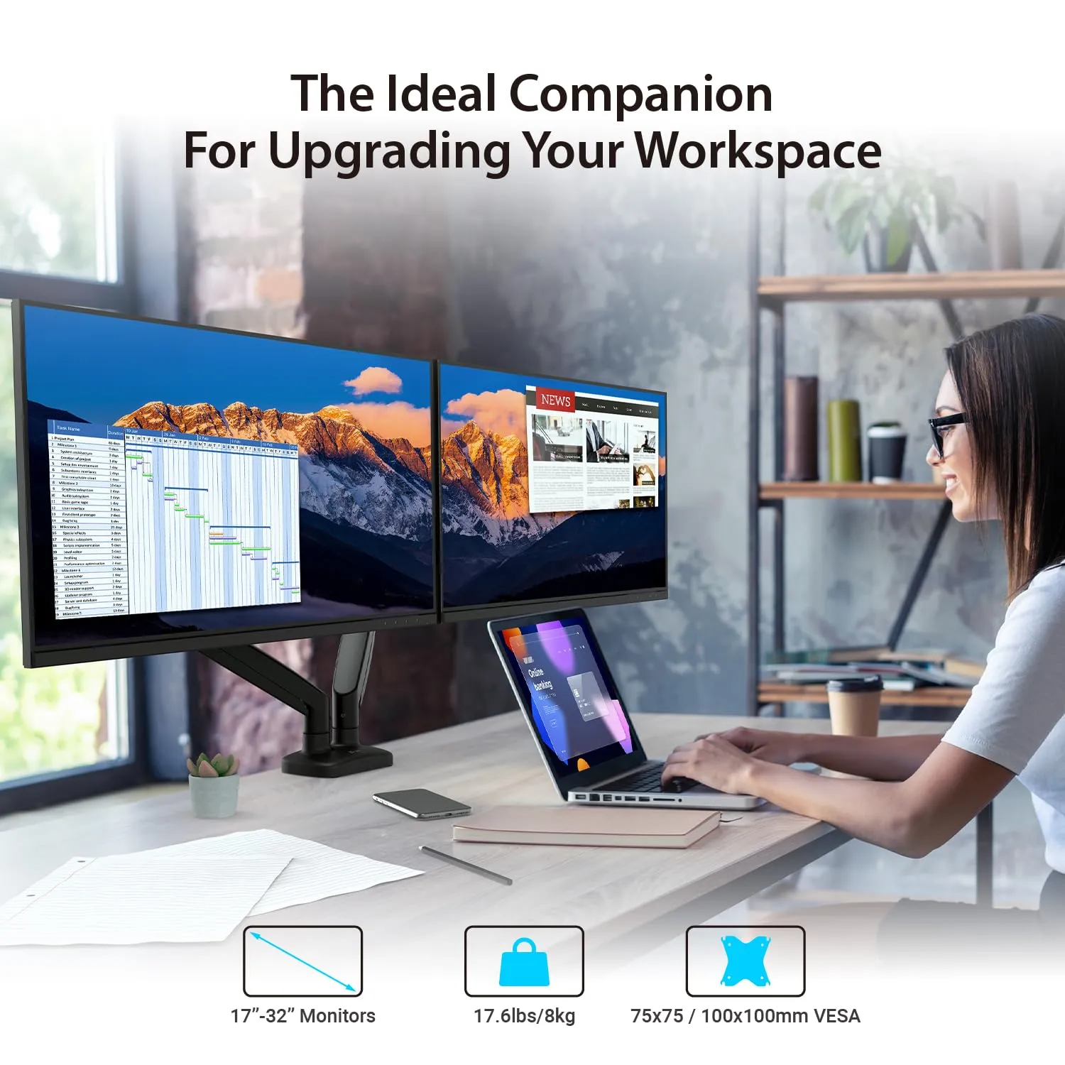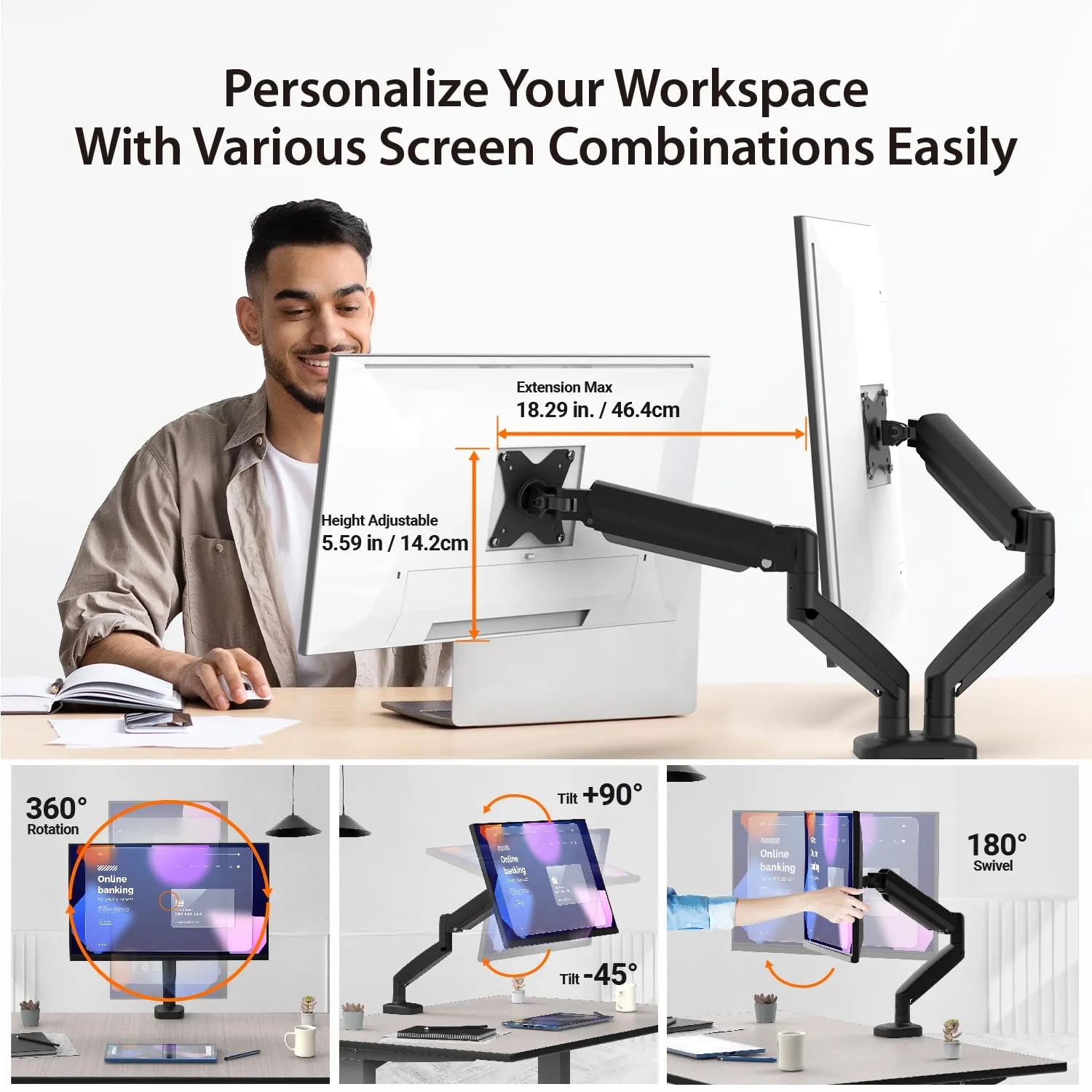 Optimize your workspace with our Adjustable Ergonomic Dual Monitor Desk Mount, designed for 17 to 32-inch monitors. This versatile mount allows you to position your screens for maximum comfort and productivity, reducing neck strain and improving posture.