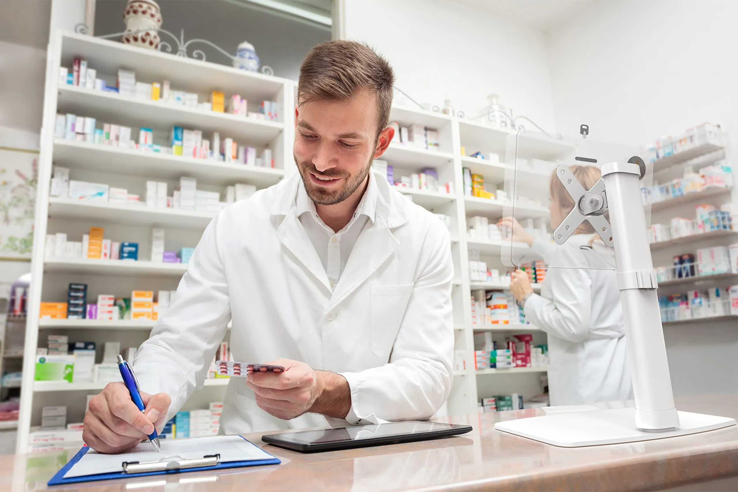 - Height adjustable for sitting or standing use