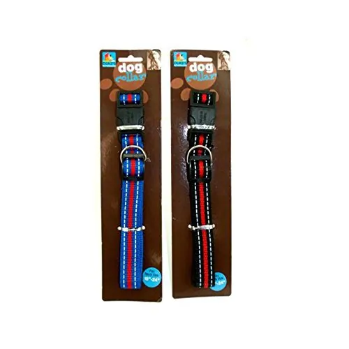 The Adjustable Striped Nylon Dog Collar is a stylish and practical accessory for your medium-sized dog. Made from durable nylon, this collar is designed to offer comfort while adding a touch of flair to your pet's wardrobe. It features a simple yet eye-catching striped design available in two assorted styles. The release clasp ensures easy on and off, while the metal loop provides a secure place for dog tags or leashes. This collar adjusts to fit neck sizes from 18" to 24" and comes beautifully packaged on a tie card for gifting.