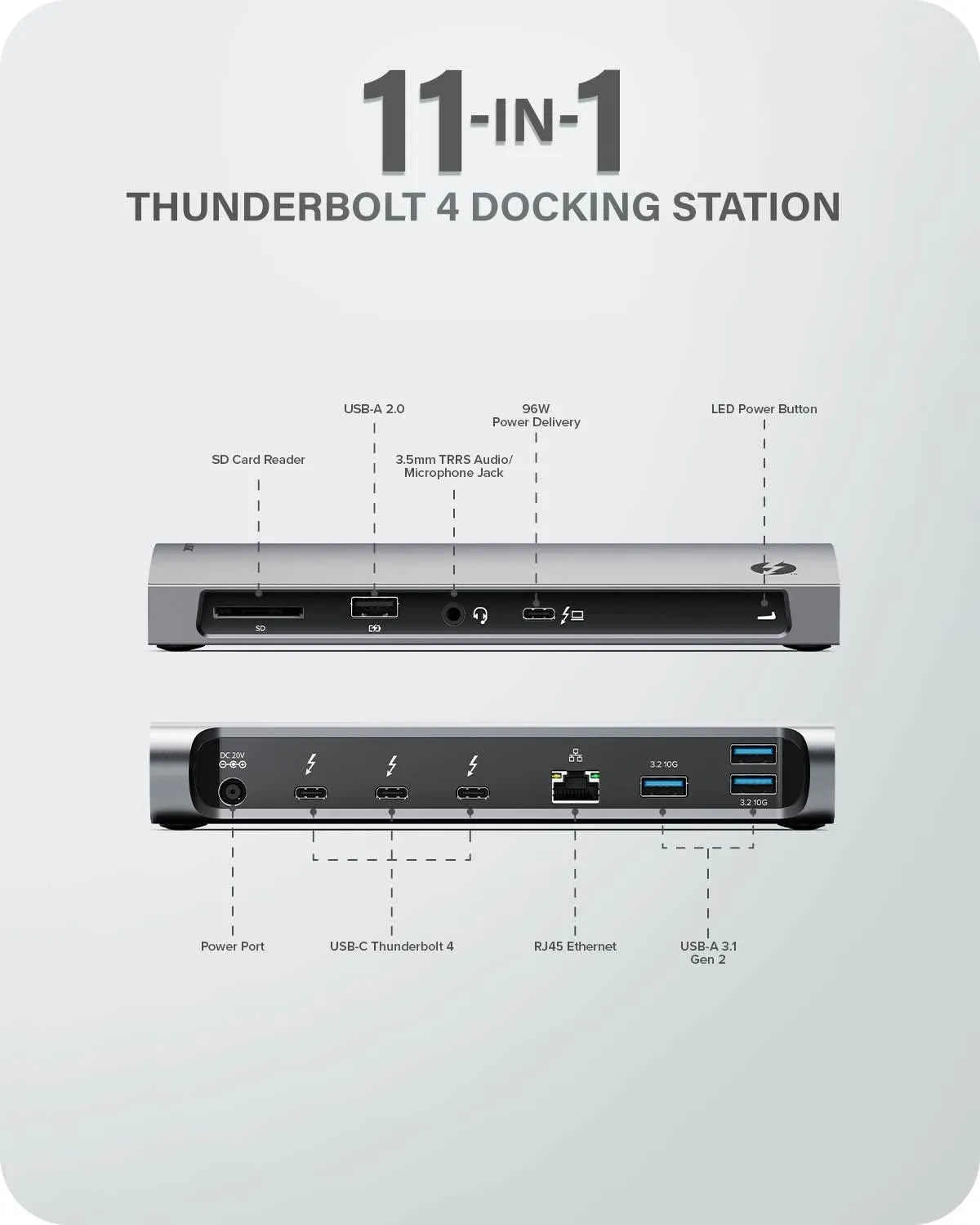 - 12 ports including USB-C, USB-A, HDMI, and Ethernet