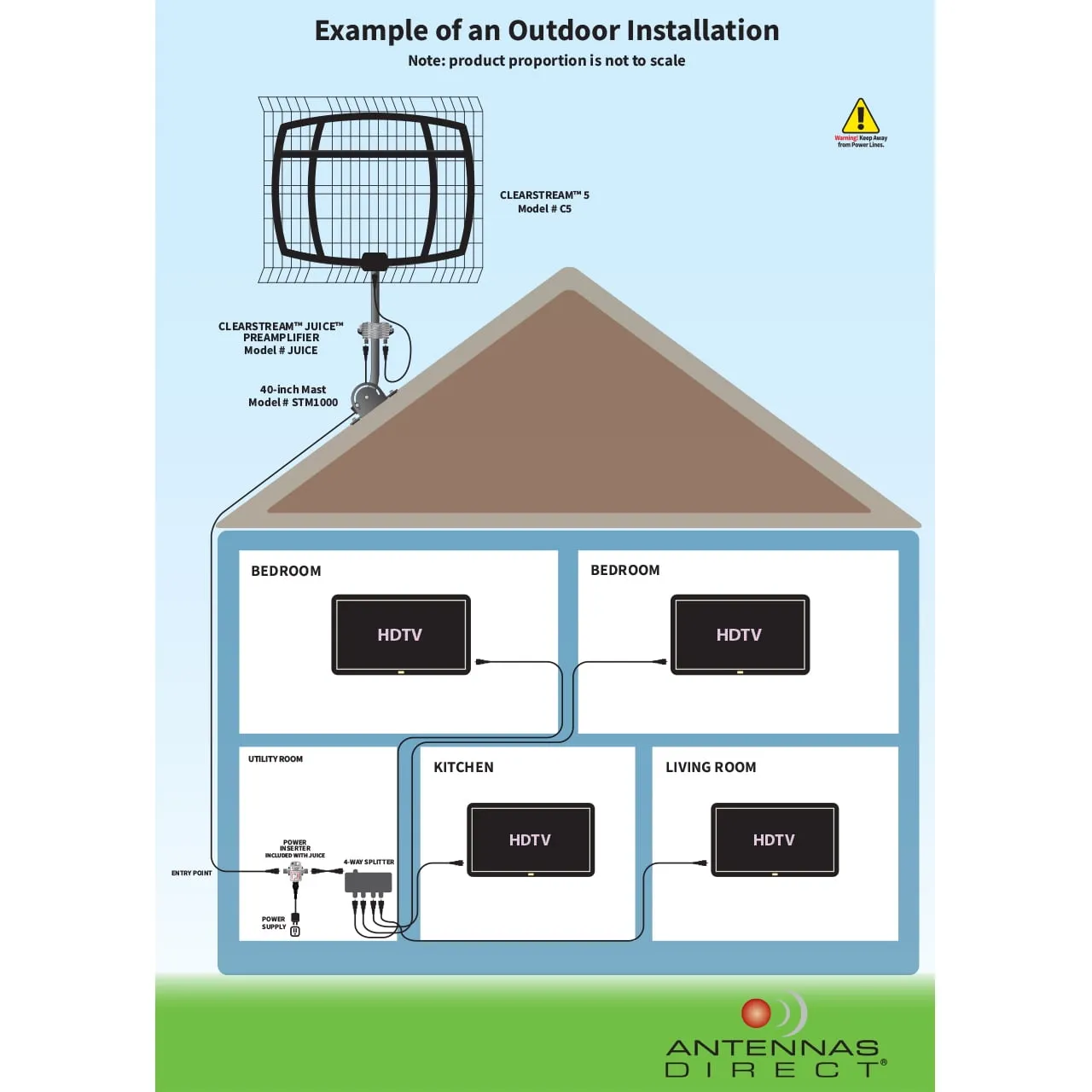 Antennas Direct C5 ClearStream 5 Hi-VHF Outdoor TV Antenna, Multi-Directional, 65+ Mile Range, 4K 8K UHD, NEXTGEN TV with All-Weather Adjustable Hardware