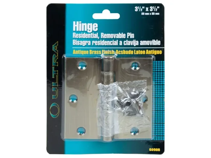 Upgrade your doors with this Antique Brass Finished Hinge, measuring 3.5" x 3.5". Crafted from durable materials, this hinge is designed to provide precise installation and smooth movement for all types of doors. Each package includes one hinge and six slotted screws for easy installation. Packaged conveniently in a blister pack, this hinge is perfect for any home improvement project.