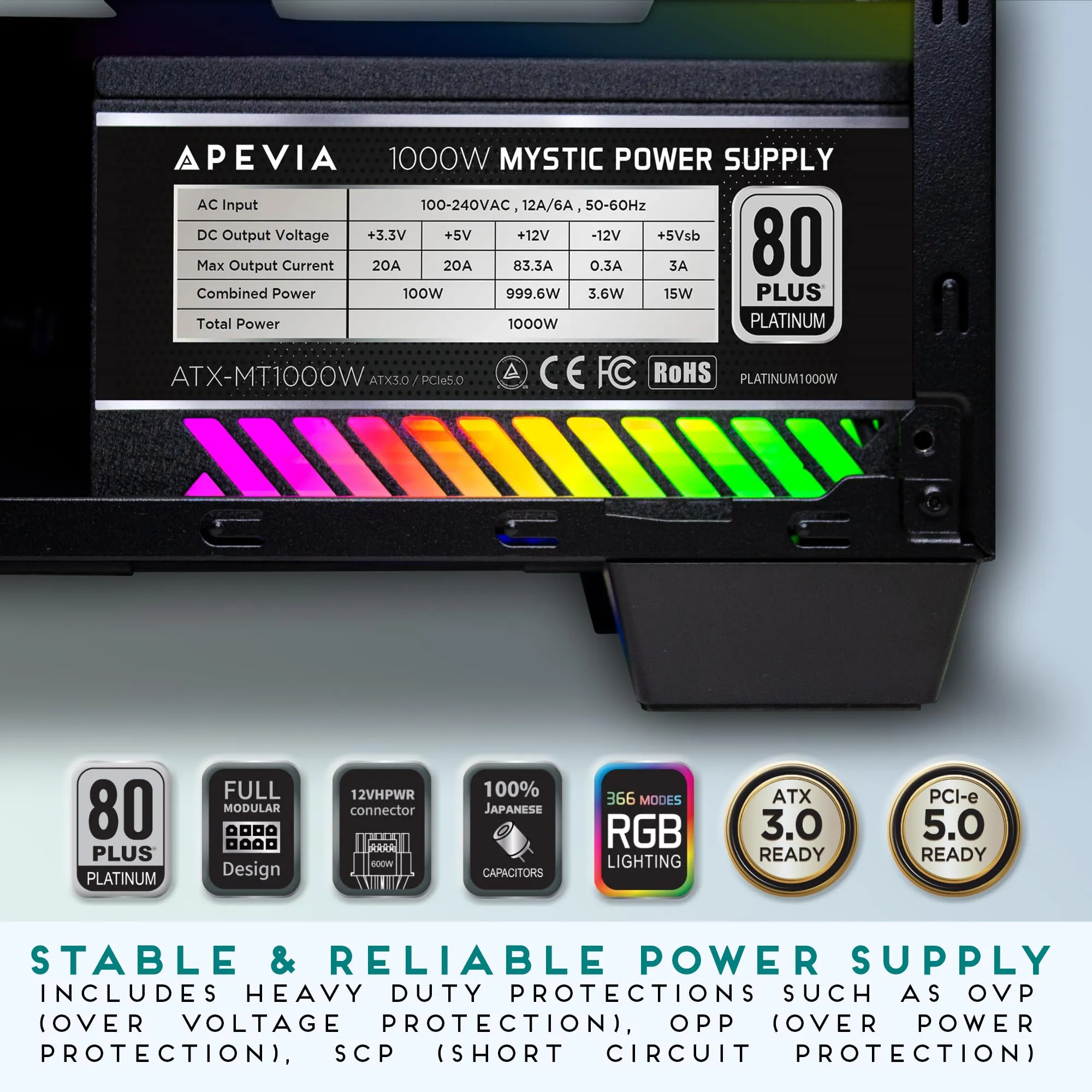 Apevia ATX-MT1000W ATX3.0 PCIE5 Mystic 1000w Atx 3.0 Amp; Pcie 5.0 Power Supply