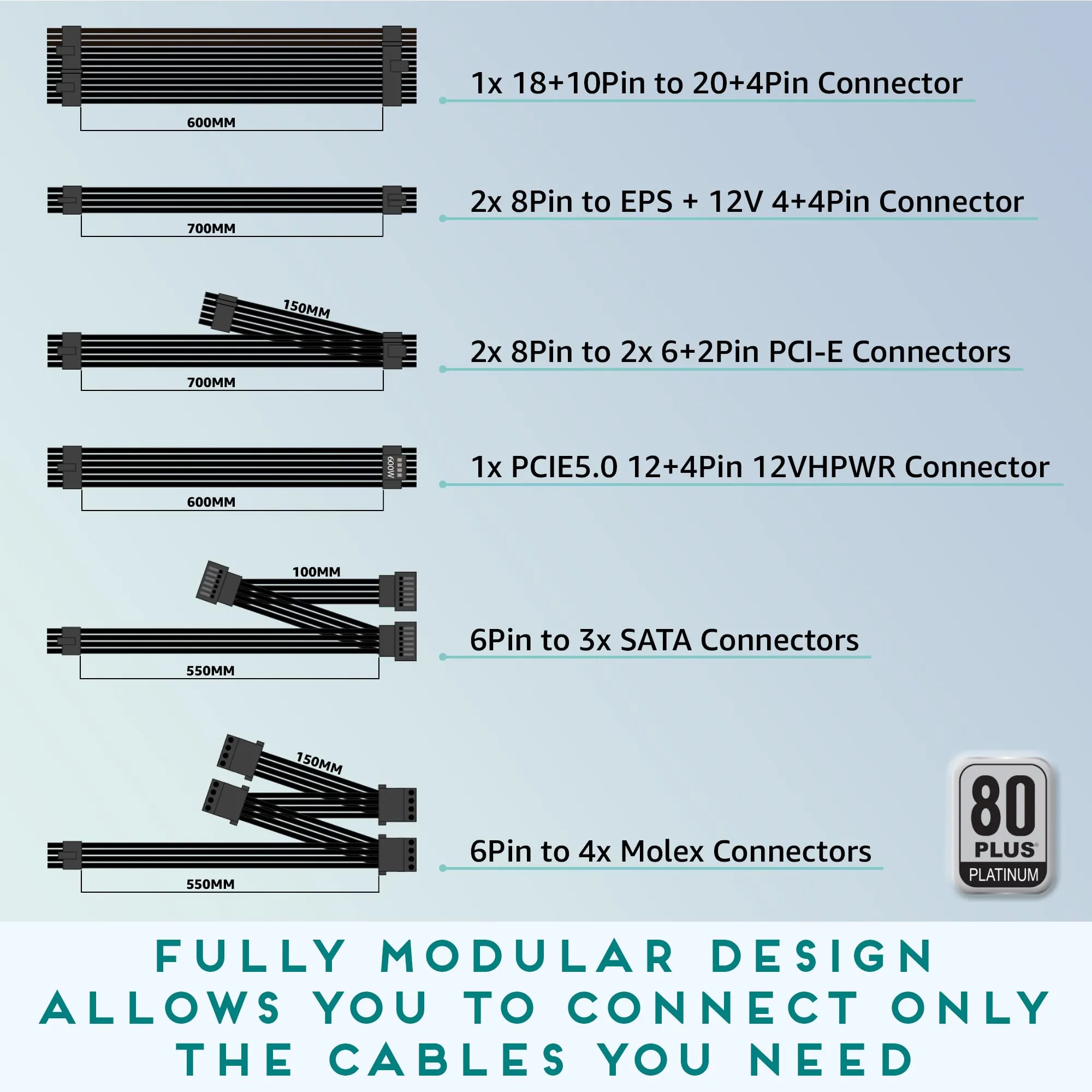 The Apevia Mystic ATX-MT1000W is a high-performance power supply designed for modern gaming PCs and workstations. With a robust 1000 Watts of power output, it ensures stable voltage and superior efficiency. It features support for the latest ATX 3.0 and PCIe 5.0 specifications, making it compatible with a wide range of components.