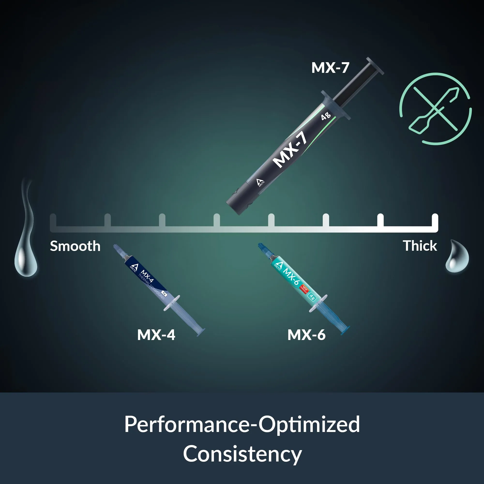 Ideal for use in CPUs, graphics cards, laptops, and gaming consoles, the MX-7 provides long-lasting durability while being non-conductive and non-capacitive, making it safe for all components.