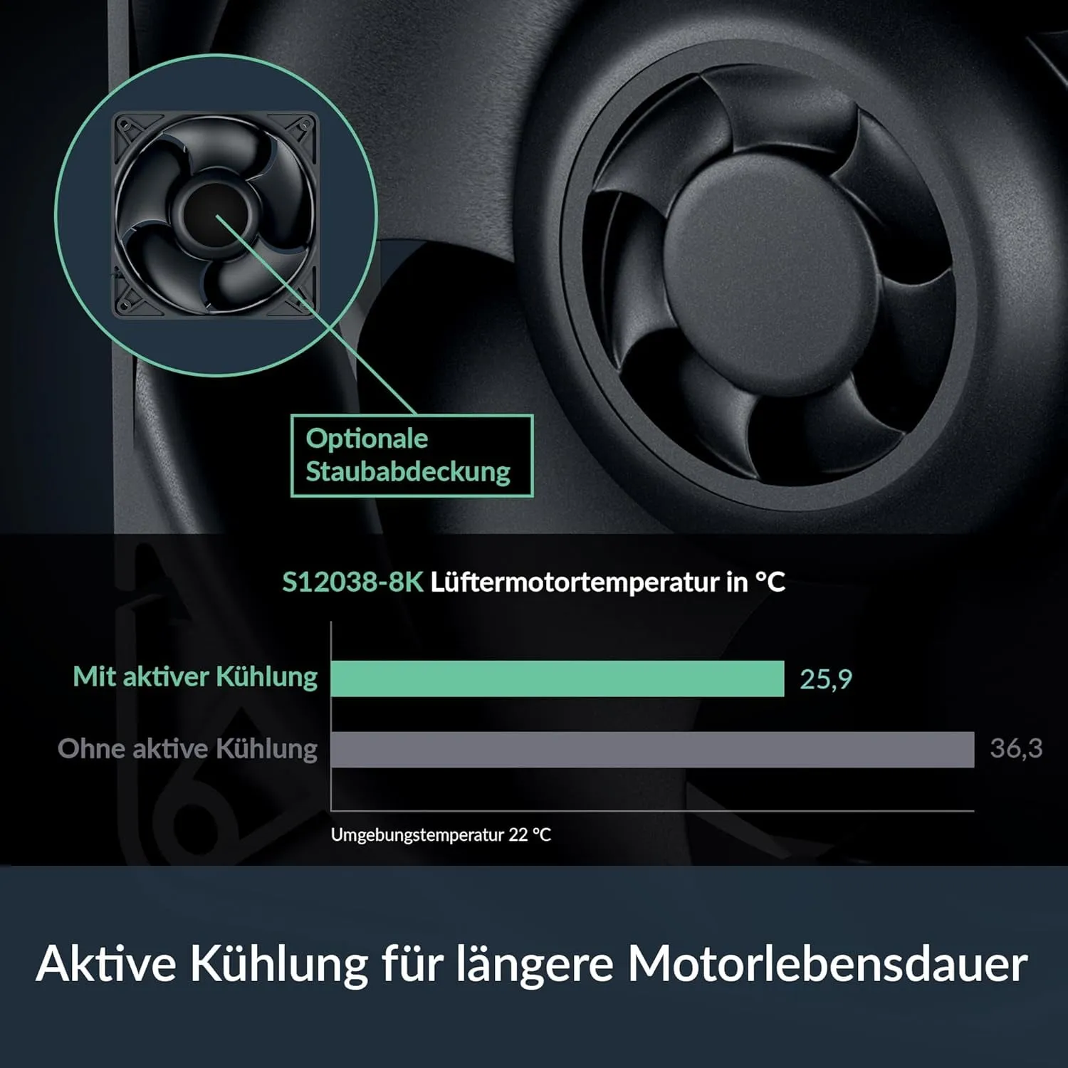 The Arctic S12038-8K is a high-performance 120mm server fan designed for optimal airflow and cooling efficiency. With a maximum speed of 8000 RPM, it provides excellent ventilation for server cases and computer systems.