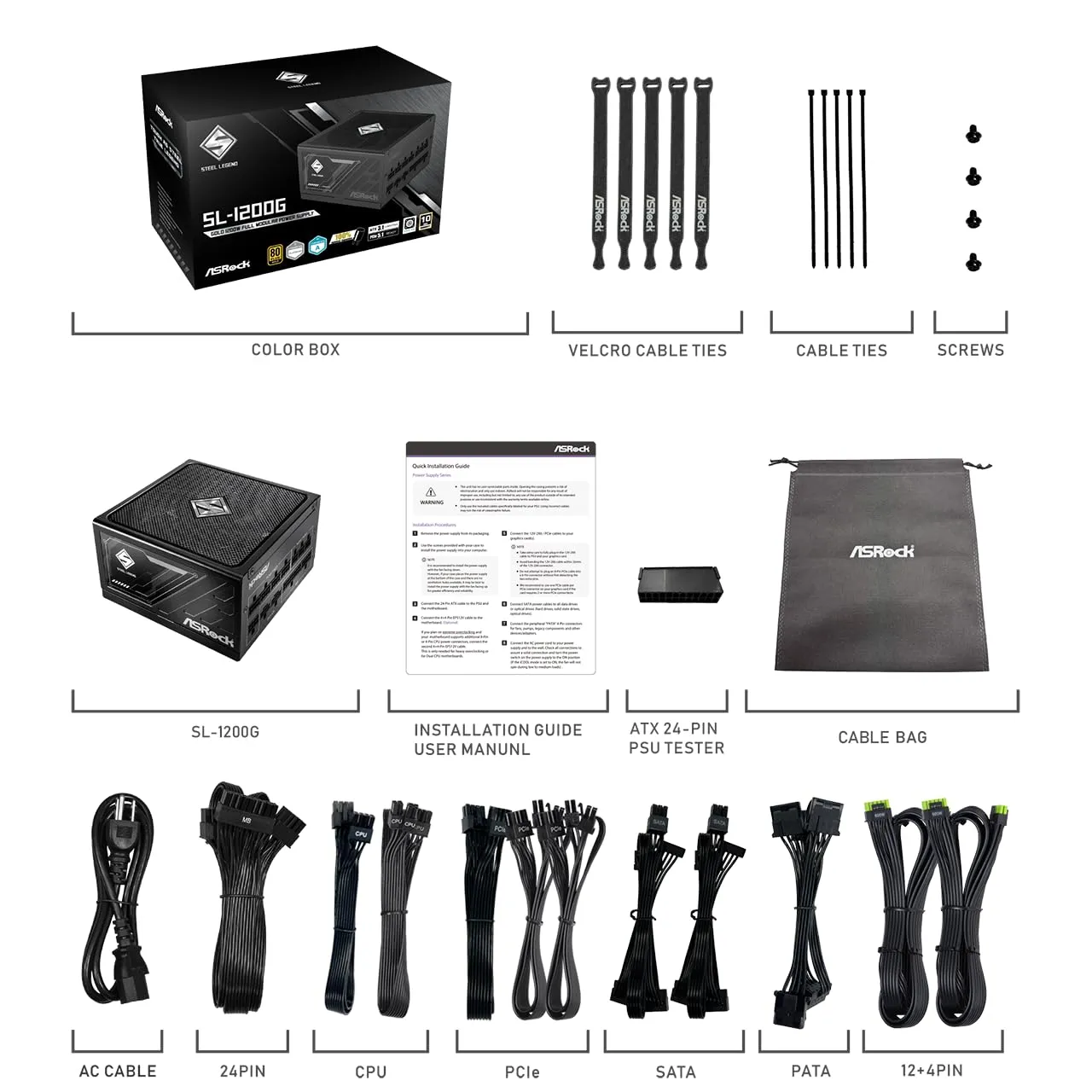 The ASRock SL-1200G is a reliable and powerful power supply unit designed for high-performance PCs. With a full modular design, it allows users to customize their cable management for cleaner builds and enhanced airflow.