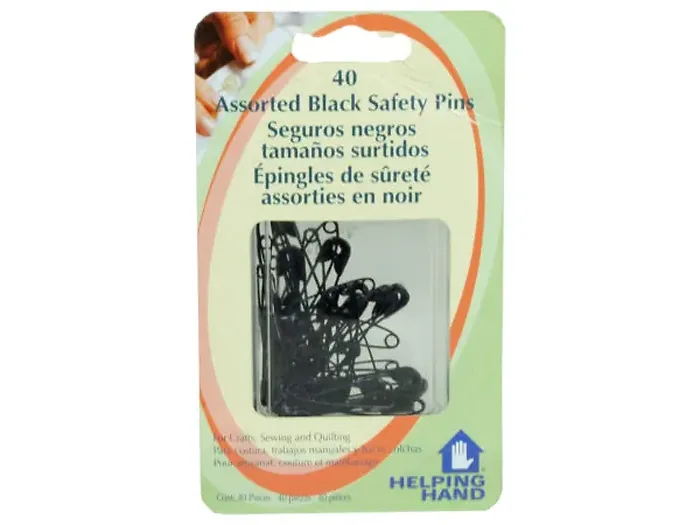 Introducing our Assorted Black Safety Pins - 40 Pack, perfect for all your crafting, sewing, and quilting needs. These versatile safety pins are ideal for holding pieces of fabric together, connecting patterns, and even for use in doll clothes. They're great for creating altered boxes, ensuring your projects stay organized and intact.