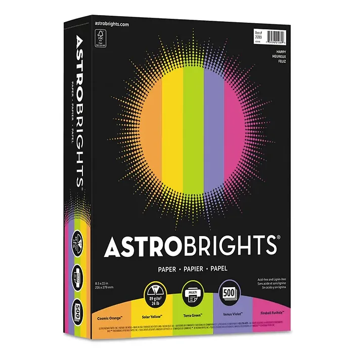 Neenah WAU 21289 Astrobrights Inkjet Laser Colored Paper Cosmic Orange Solar Yellow Terra Green Venus Violet Fireball Fuschia Letter 8 12 X 11 24 Lb Basis Weight 500 Ream Fsc