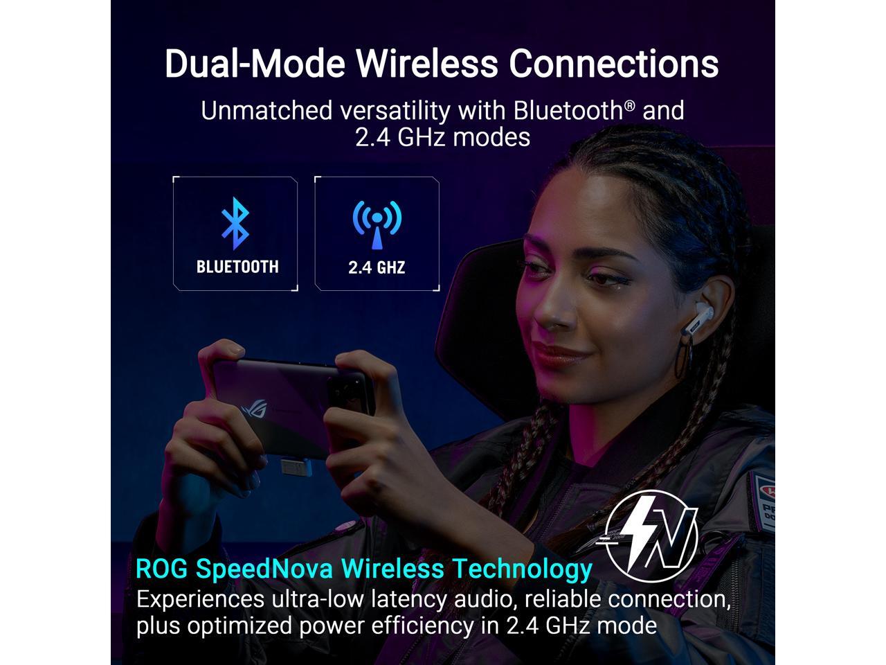 ASUS ROG Cetra True Wireless Gaming Headphones (2.4 GHz & Bluetooth 5.3, ROG SpeedNova, 24-bit 96 kHz audio, Bone-Conduction AI Microphones, Adaptive ANC, 46-Hour Battery Life) - Moonlight White