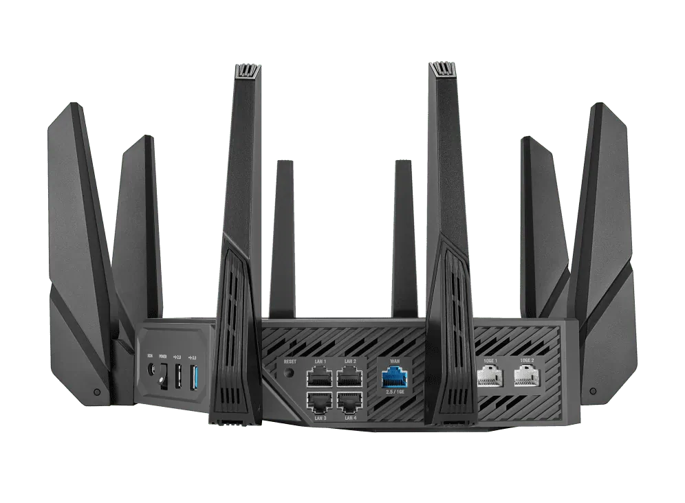 Utilizing four frequency bands—2.4 GHz, two 5 GHz bands, and 6 GHz—this router ensures optimal performance and minimal latency, providing a gaming experience unlike any other.
