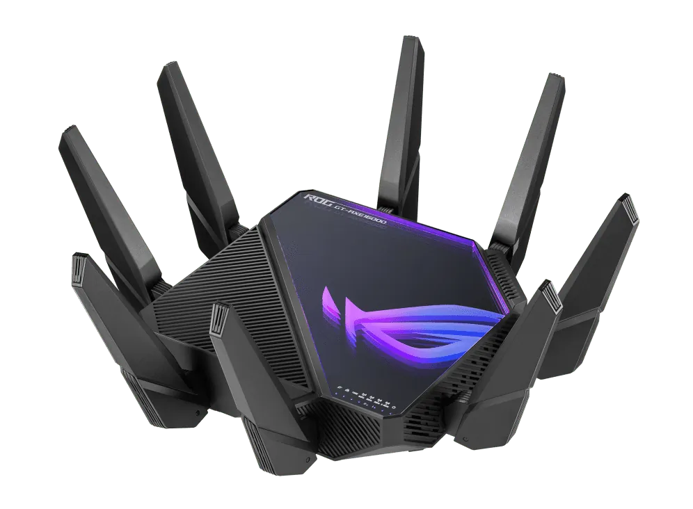 The ASUS ROG Rapture GT-AXE16000 is the world’s first quad-band WiFi 6E gaming router, engineered to deliver ultra-fast speeds of up to 16000 Mbps. With its advanced technology, you can enjoy seamless gaming and streaming across multiple devices.