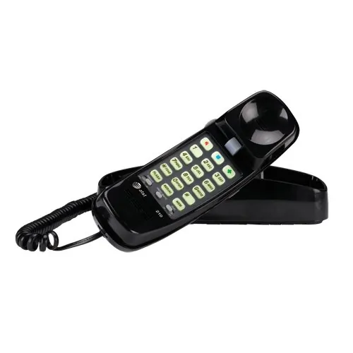 The AT&T 210 Corded Trimline Phone in sleek black combines classic design with essential functionality, making it an ideal choice for any home or office environment.