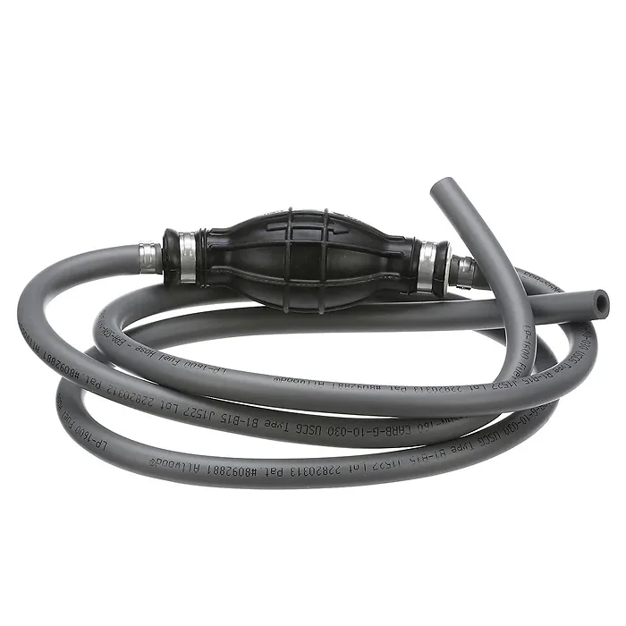 This EPA-certified universal fuel line kit from Attwood offers reliable fuel delivery for your engine, ensuring optimal performance, safety, and value. The kit includes a 6-foot-long, 5/16-inch diameter low-permeation fuel line that resists kinking and hardening, with a temperature rating of up to 100 degrees C. A robust multi-layer, low-permeation primer bulb is also included, featuring connections designed for durability and leak resistance.