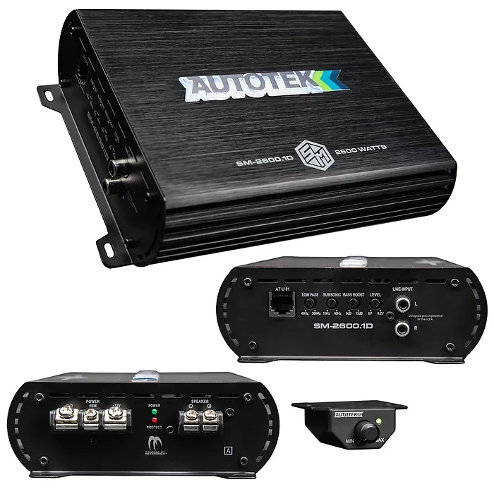Autotek SM26001D Mono Amplifier 1 X 650 @ 4 Ohms 1 X 1300 @ 2 Ohms 1 X 2600 Watts @ 1 Ohm