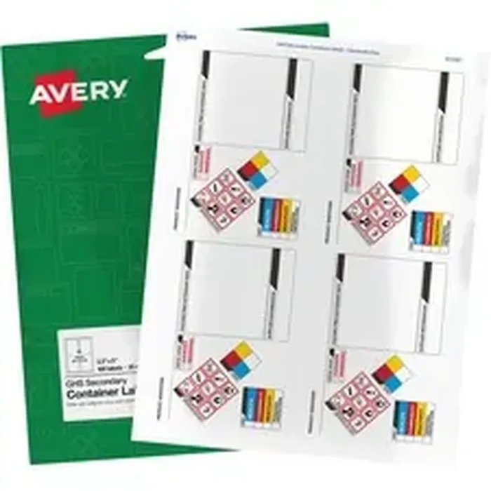 Avery AVE 61209 Averyreg; Ghs Secondary Container Preprinted Labels Permanent Adhesive Rectangle Assorted Film 4 Sheet 25 Total Sheets 100 Total Labels 100 Label