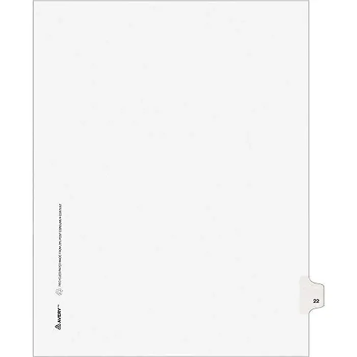 Avery AVE 01022 Averyreg; Individual Legal Exhibit Dividers Avery Style 1 Printed Tabs Digit 22 1 Tabsset 8.5 Divider Width X 11 Divider Length Letter White Paper Divider Paper Tabs 25 Pack