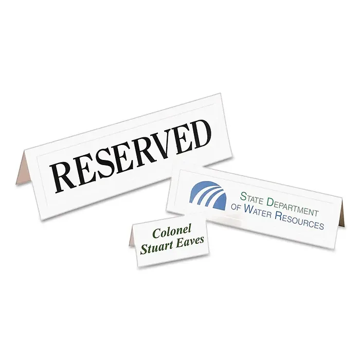 Tent cards are ideal for meetings, presentations, seminars and conferences. Cards are embossed for a professional appearance and pre-scored for neat folding. Sheets of tent cards are compatible with laser and inkjet printers. Heavyweight cardstock sheets feed automatically from a paper tray. Ultra-fine perforations allow you to separate cards easily and cleanly. Free, easy-to-use templates for Microsoft Word and other popular software programs are available online.