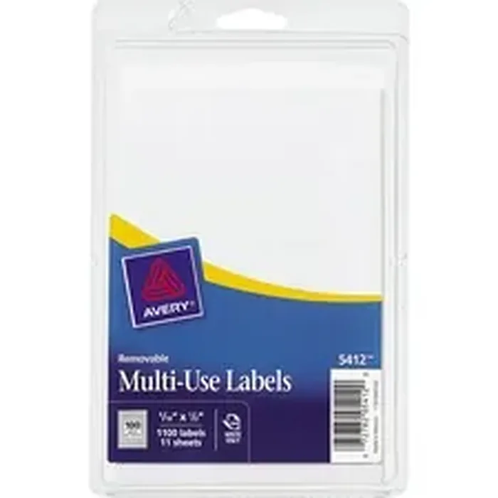 These removable, writable labels are perfect for labeling of boxes, envelopes, packages and more. They stick and stay put, but remove cleanly with no messy residue when you need a change. Multi-Use Labels adhere to most smooth surfaces including paper, cardboard, plastic, wood, glass and metal. Just write with your favorite pen, peel and stick. Labels come on a small sheet. Each sheet includes 100 labels (5/16" x 1/2").