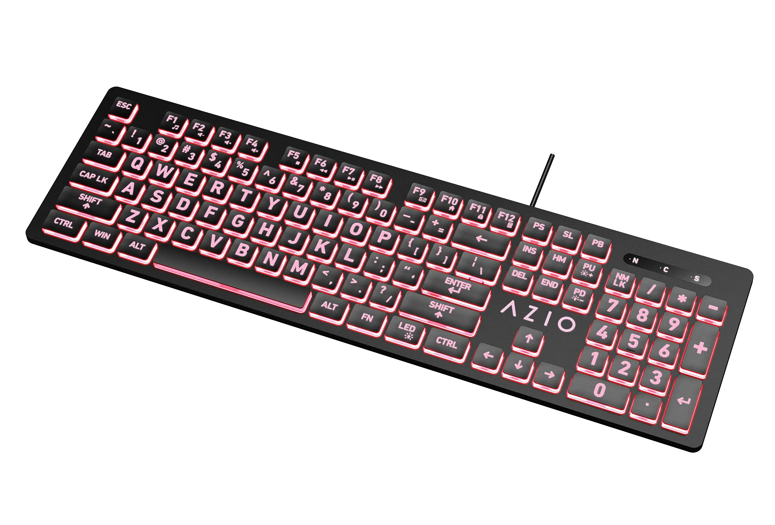 Azio KB512 KB512 Vision USB Wired Computer Keyboard for PC, 3-Color Backlight, Black