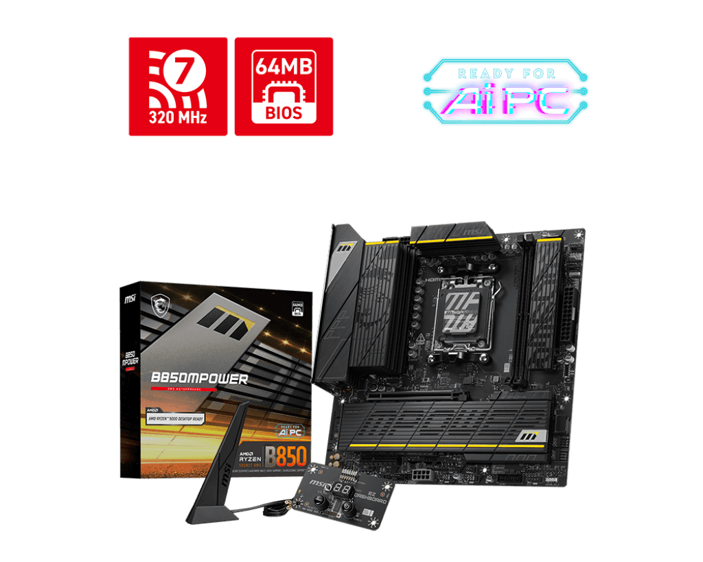 Msi B850MPOWER B850am52ddr51pciex161pciex44m.22sata31usb 3.2 Gen2x26usb3.