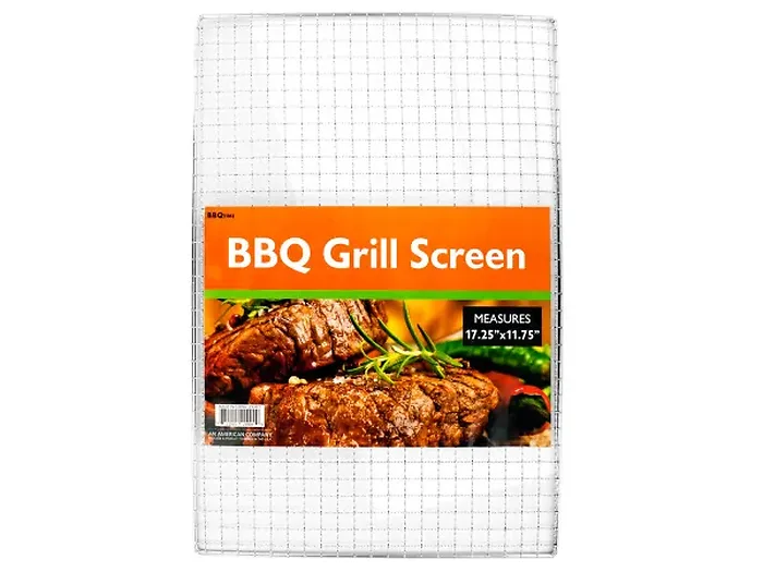 Grill smaller foods, vegetables, herbs and more with this Barbecue Grill Screen featuring a rectangular metal screen made with wavy wire to prevent slippage and a heavy gauge wire frame for stability and durability. Measures approximately 17.25" x 11.75". Grid spaces are approximately 0.5" x 0.5". Comes shrink wrapped.
