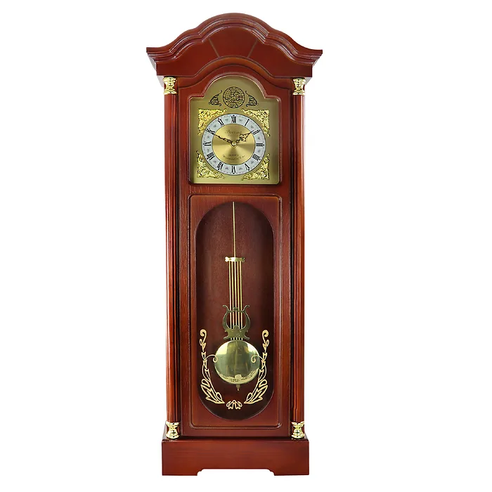 Bedford Clock Collection offers you the elegance and beauty of classic style with the modern reliable technology of today’s wall clocks. Whether a gift to yourself or for someone else, this clock will add a special touch of sophistication to any room. With its stunning Antique Cherry Oak finish, Golden Accents and Swinging Pendulum, this wall mountable time piece is not only an attractive focal point, but a functional and reliable piece of technology. With 4 distinct Chimes, the clock will announce the beginning of each new hour for your convenience. Carved details and special touches throughout, as well as a convenient Sleep Mode that provides you with the option to pause the melodic chimes of this beautiful time piece for an entire 12 hour period with a simple push of your finger.Prop65 Warning - WARNING: This product can expose you to chemicals including BBP, which is known to the State of California to cause cancer and/or reproductive harm. For more information, go to www.P65Warnings.ca.gov.
