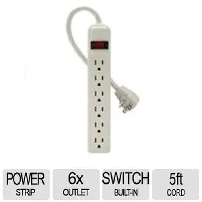 6-OUTLET POWER STRIP; RIGHT ANGLE, 5 FT.