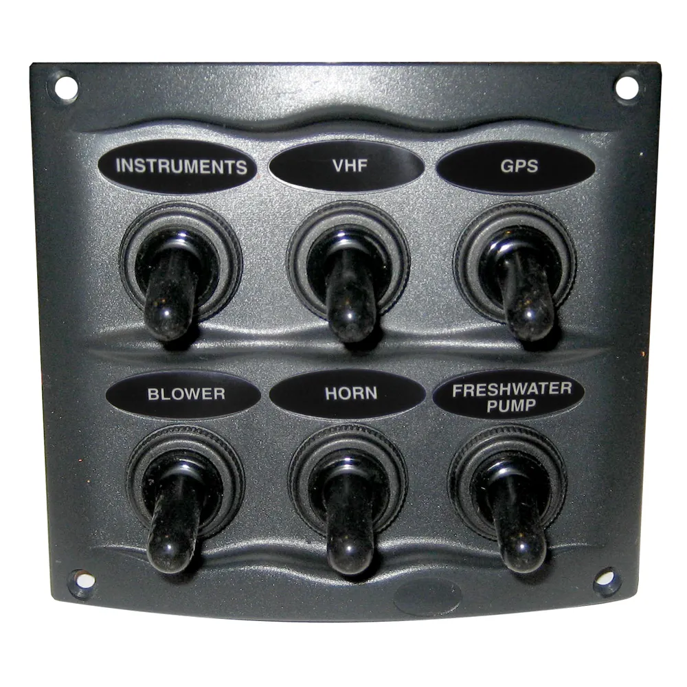 This compact and robust waterproof switch panel is designed for durability and functionality.