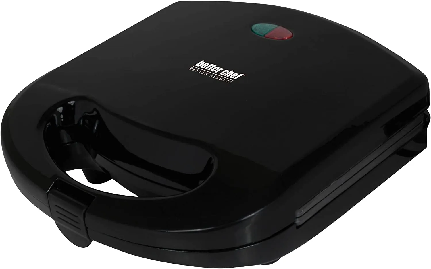 Make delicious sandwiches quickly with this panini grill by Better Chef. Features non-stick cooking plates for easy food release and clean-up, and a cool-touch exterior. Grills two sandwiches at once and stands upright for easy storage.