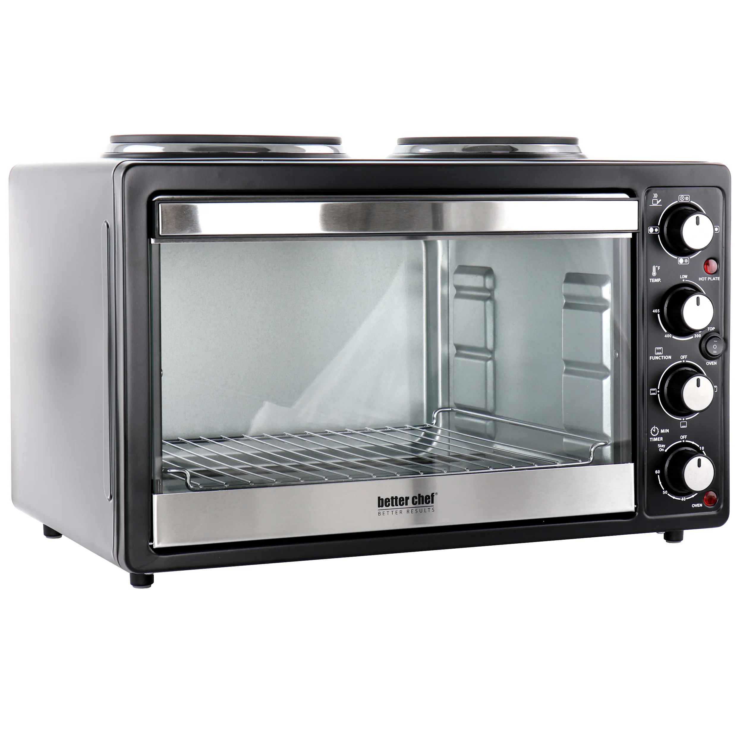 The Better Chef XL Toaster Oven with Dual Solid Element Burners in Black is the ultimate cooking appliance for those with limited kitchen space or those on the go. This versatile toaster oven features an expansive cooking area, enabling you to enjoy a variety of meals, from baking pizzas to preparing a delicious breakfast.