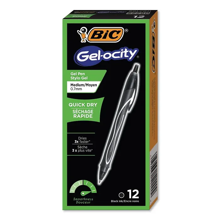 Bic BIC RGLCG11BK Gelocity .7mm Retractable Pen Medium Pen Point 0.7 Mm Pen Point Size Retractable Black Gelbased Ink 12 Dozen