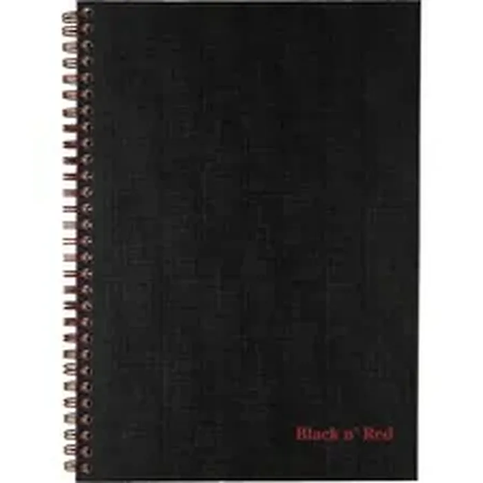 Business notebook features a stylish black and red cover to add a timeless look to your notes. Bleed-resistant pages prevent ink from bleeding through to keep your notes legible. Ruled pages keep your handwriting neatly aligned for clear, easy-to-read results. Double wire bound spine allows the notebook to lie flat or be folded back to suit your writing style.