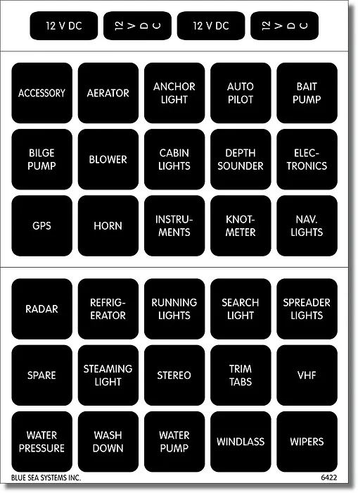 Navico 4215-BSS Blue Sea 4215 Label Kit Dc H2o 30 Square Black V1