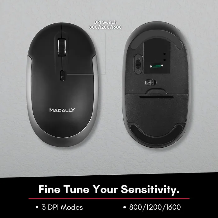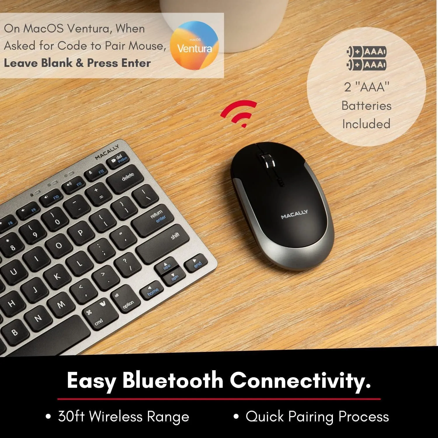 Macally BTDYNAMOUSE Bluetooth Quiet Click Mouse For Mac And Pc Blackspace Gray
