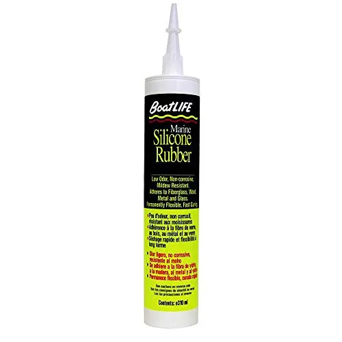 An all-purpose, non-corrosive, non-yellowing, mildew resistant, low-odor, 100% marine high quality silicone sealant. Tack-free in 30 minutes or less. *Fully cured in 24 hours. For use above or below the waterline. Will not shrink, crack, or dry out. Superior flexibility and adhesion to fiberglass, plastic, metal, and wood. Retains flexibility and tensile strength even after years of exposure. Acid free cure will not corrode metal.