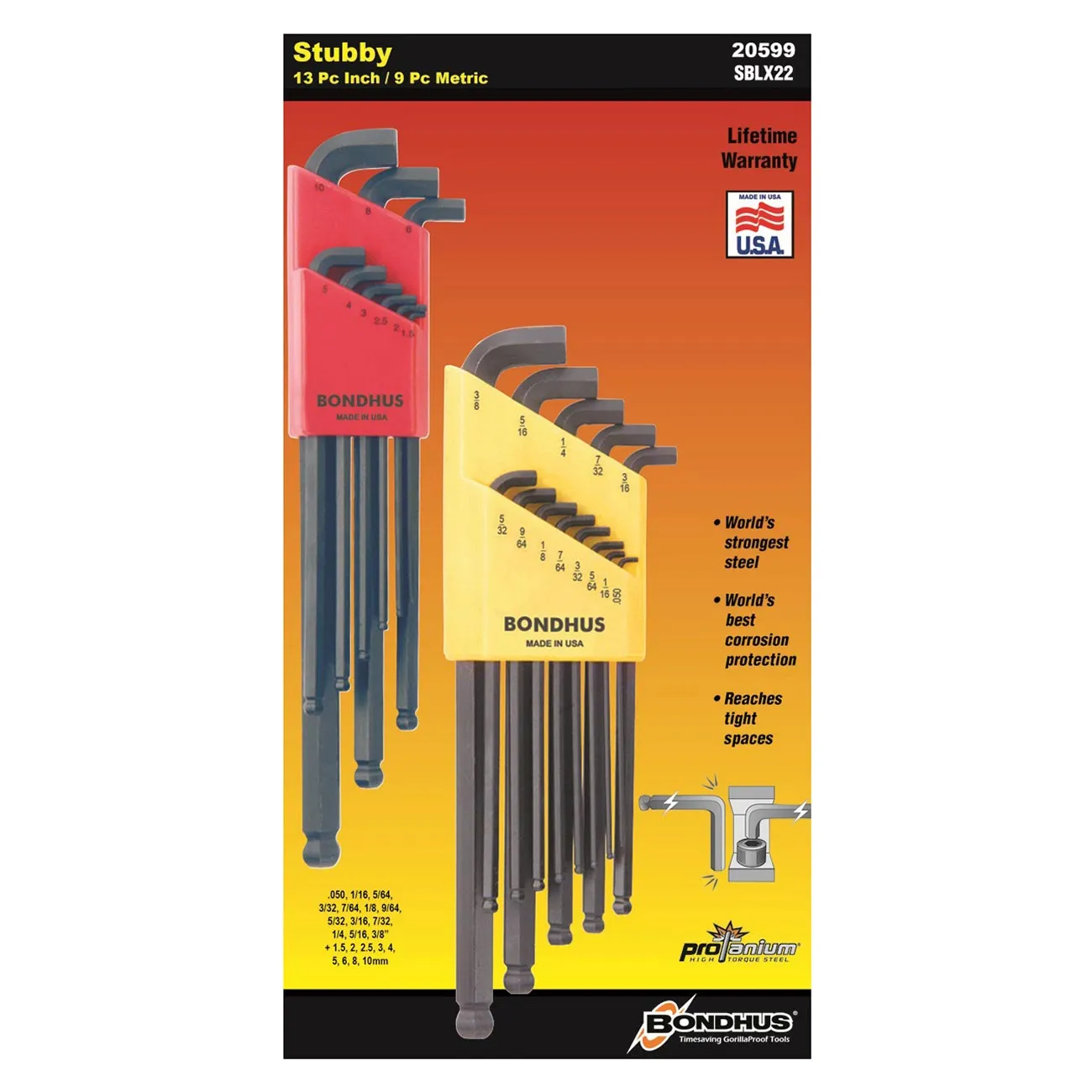 Bondhus 20599 Bondhus Bondhus Balldriver Stubby Metricsae Ball End Hex Lkeys Double Set 22 Piece