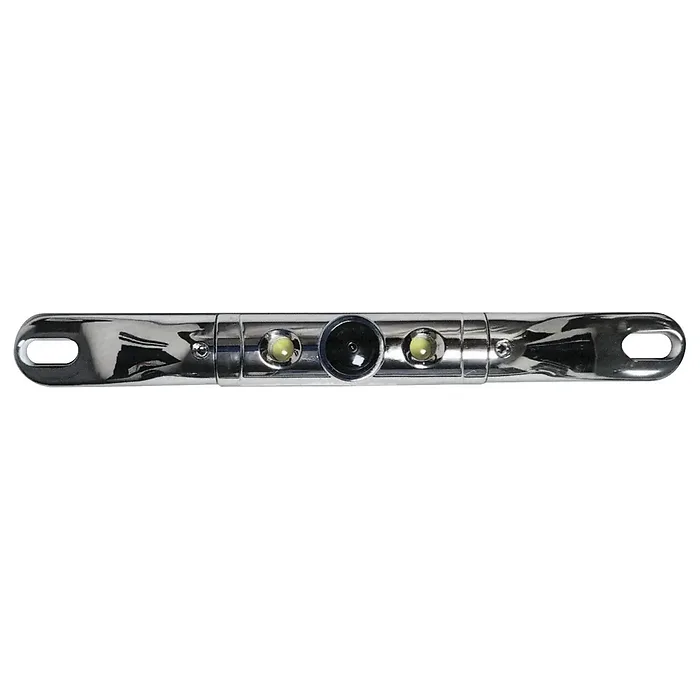 The Boyo CMOS Color License Plate Camera is designed to enhance your vehicle's backing and parking experience. With a sleek chrome finish, this camera seamlessly integrates into your vehicle's design while providing high-quality video feed.