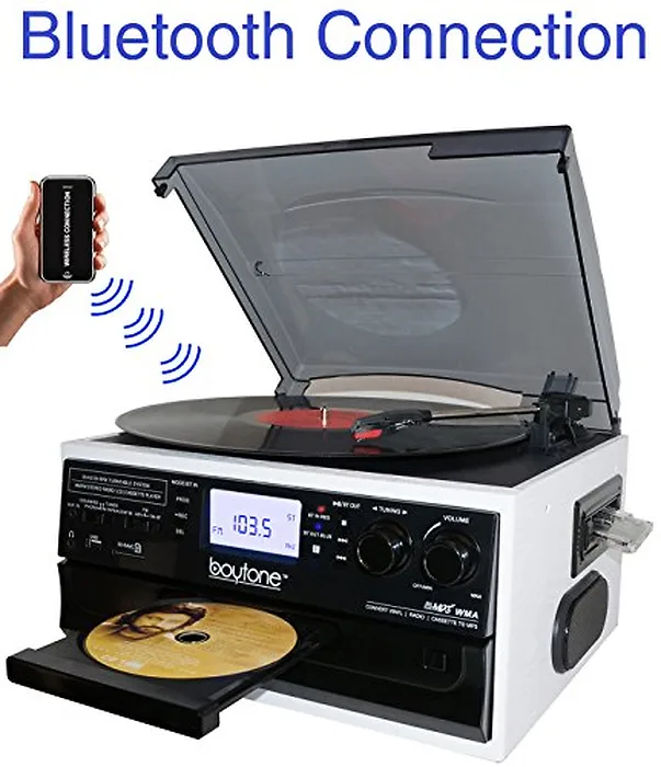 Boytone BT-22WT Bluetooth Record Player Turntable Amfm Radio Cassette Cd Player
