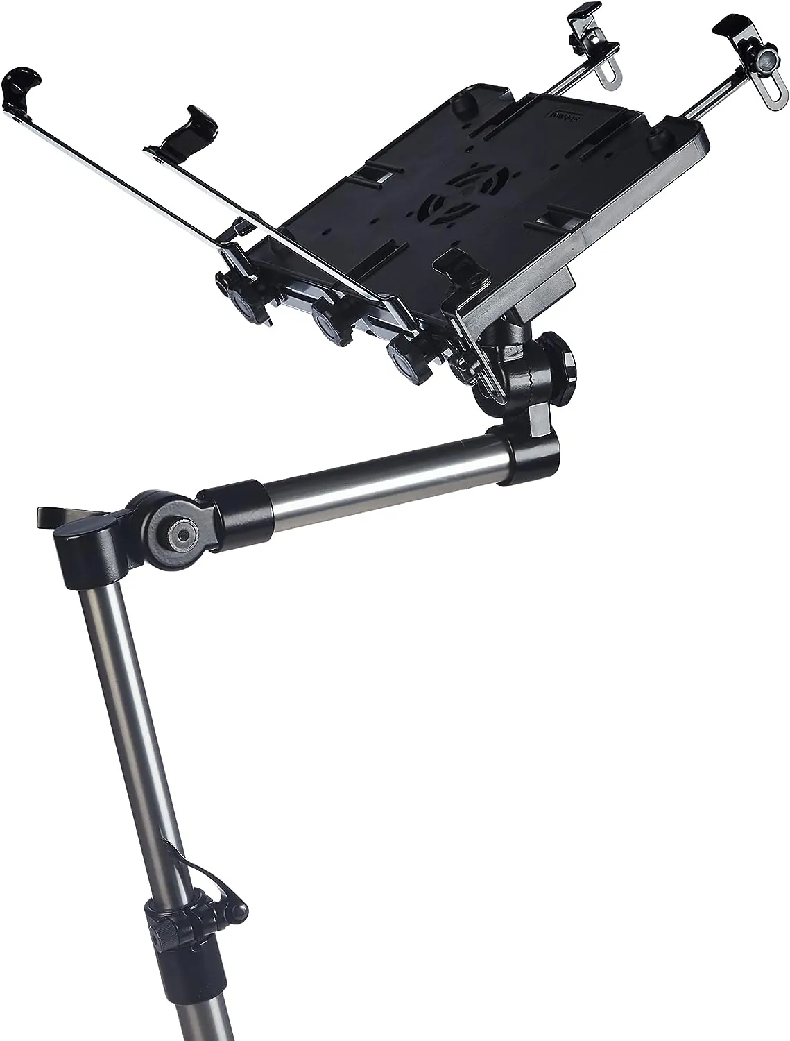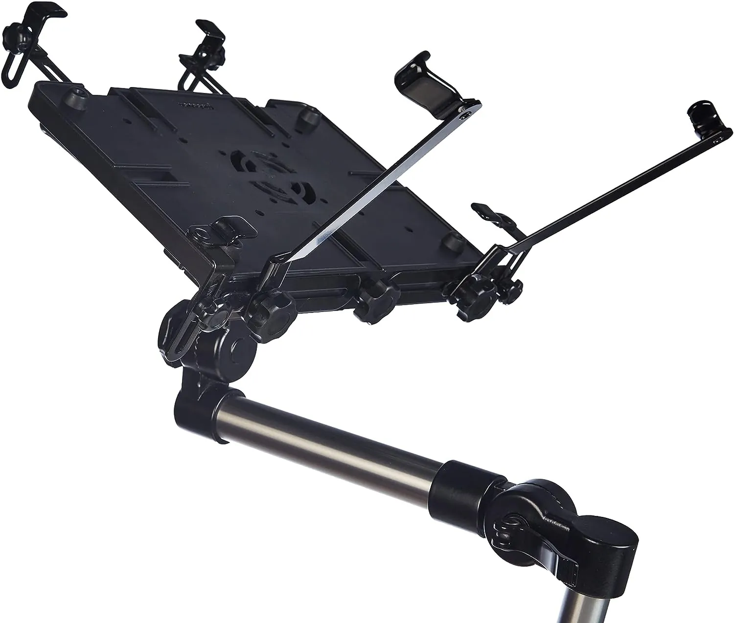 SECURE MOBILE COMPUTER STAND: This mount is compatible with laptops and computers ranging from 10–17". It’s made from heavy-duty 30-millimeter aluminum tubing and high-strength alloy locking joints. The quick-release fitting makes it easy to attach or remove the stand from the passenger seat bolt.