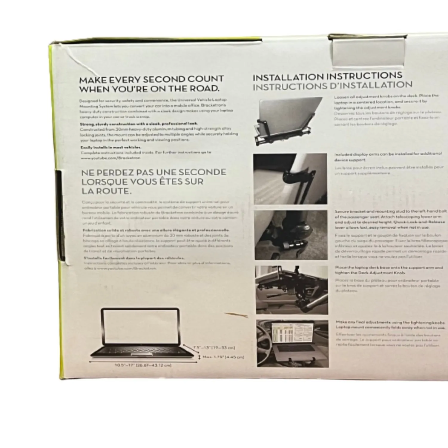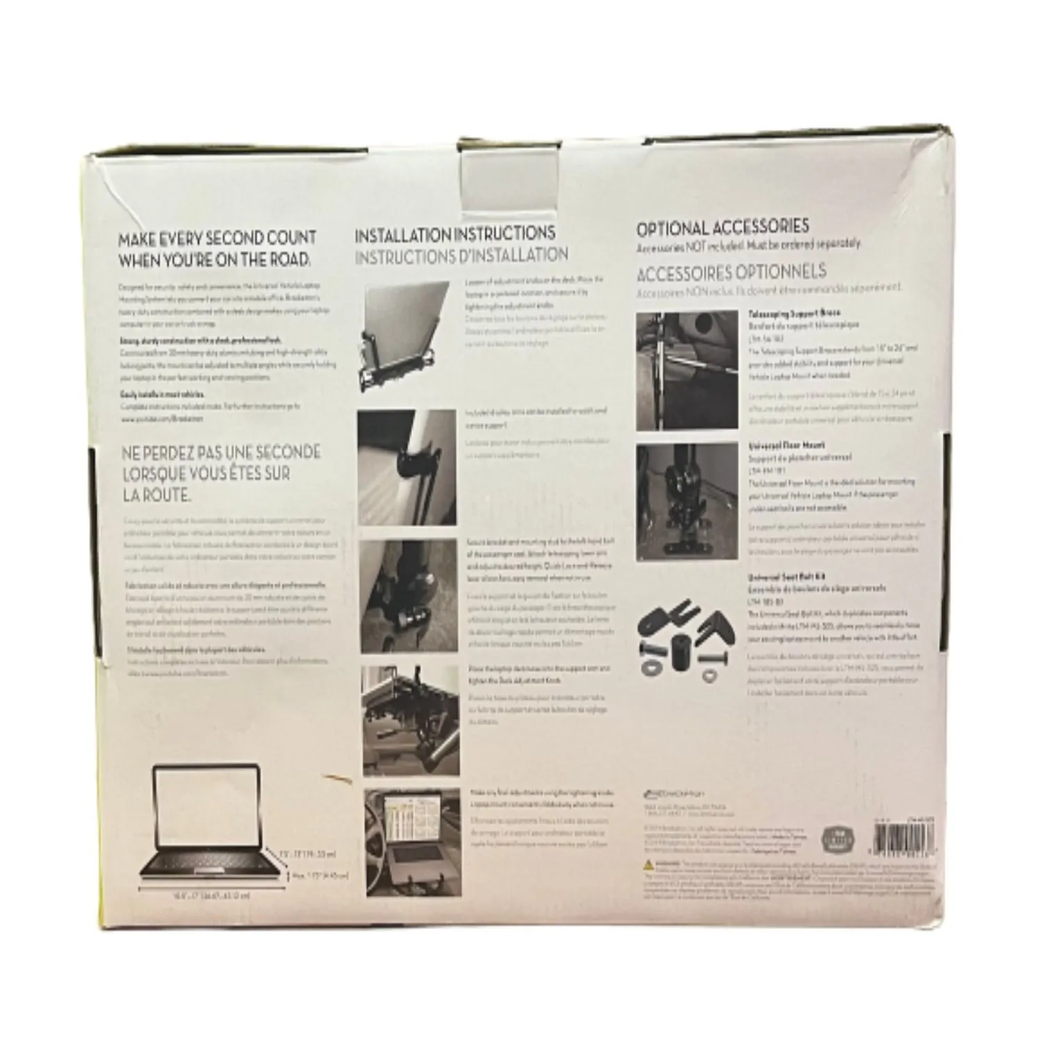 UNIVERSAL LAPTOP HOLDER: The Bracketron Universal Vehicle Laptop Mount is designed for anyone who needs a sturdy holder for laptops in their car, truck, or van. The mount’s quick installation and low vibration gives you steady computing on the go. Mount dimensions are 16" x 12" x 27".