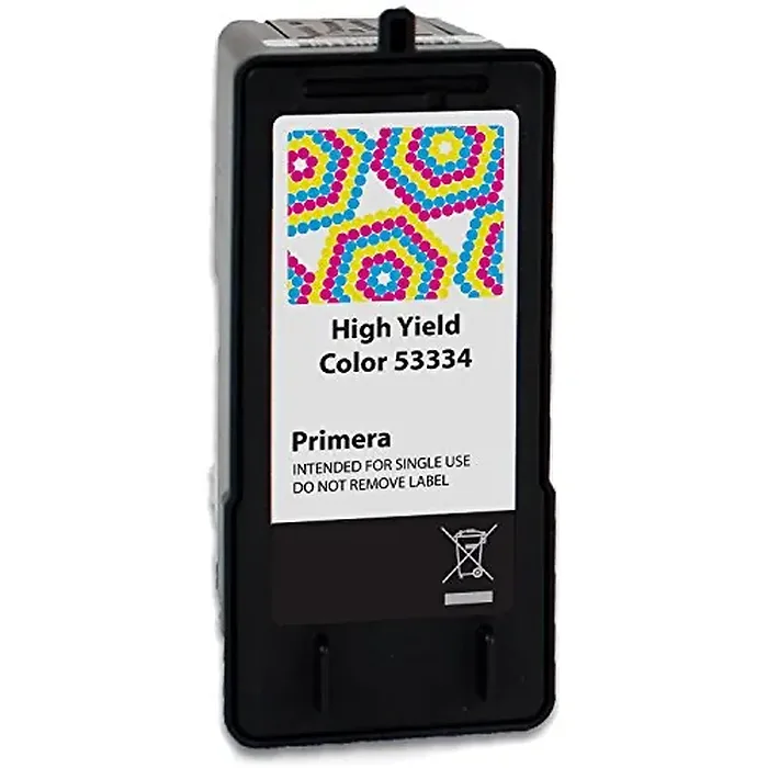 High yield color for use with primera bravo 4200, se-3. This is a OEM MONOCHROMATIC TONER PRIMERA brand Toner Cartridge (HI COLOR ) that works with the following printers / machines (BRAVO 4200, SE-3). Product Features: Cartridge Yield: High Yield Compatible with: Bravo SE3 AutoPrinter Printing Color: Color (cyan, magenta, yellow) Printing Technology: -jet Product Description: Primera - High Yield - color (cyan, magenta, yellow) - original - cartridge Product Type: cartridge Benefits of this product: This is the standard color cartridge for use with the Bravo SE Disc Publisher/AutoPrinter and Bravo SE Blu Disc Publisher. HIGH YIELD COLOR. BRAVO 4200, SE-3. OEM PRIMERA Brand.