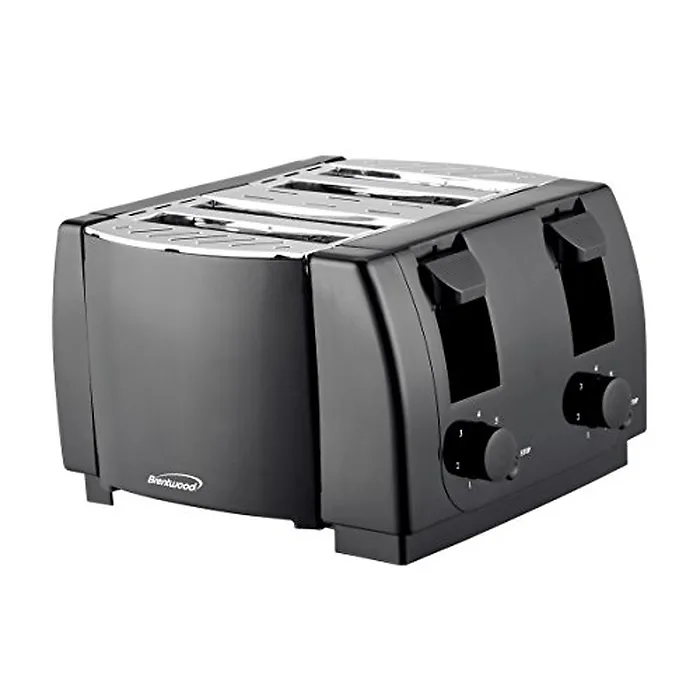 Use the powerful 1300 watt Brentwood TS-285 Cool Touch 4 Slice Toaster to save time in the morning when preparing breakfast for the family. Choose level of toast with 7 setting, light to dark dials. Auto centering guides insure even toasting. Individually cancel each toasting cycle using the cancel buttons. Right and left side crumb trays are located on the bottom of the toaster. Sleek black toaster with stainless steel accents looks great on any kitchen counter.