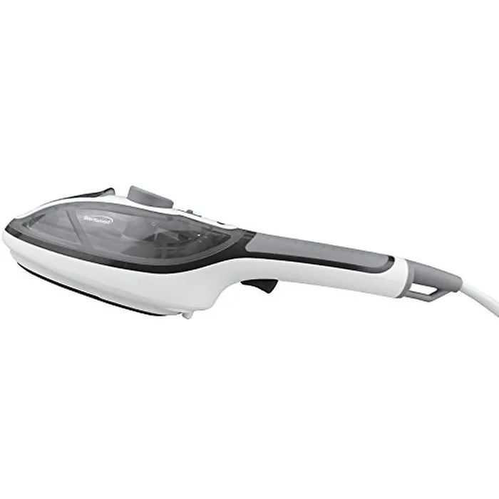 The powerful 800w Brentwood Non-Stick Handheld Clothes Steamer and Iron heats up fast and quickly eliminates wrinkles at home or on the go. Features burst steam, comfortable trigger action, non-stick sole plate, adjustable temperature and steam. The extra long cord allows for easy and comfortable handling of the steamer.