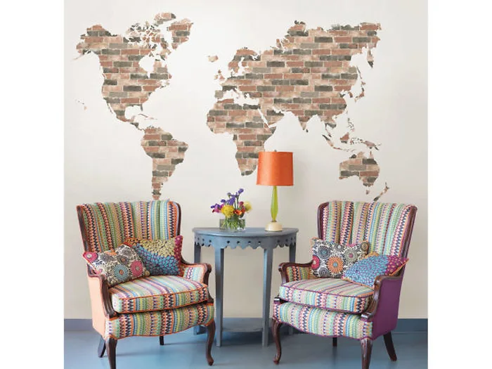 Bulk HA546 Brick Wall World Map Wall Art Kit Vintage Style