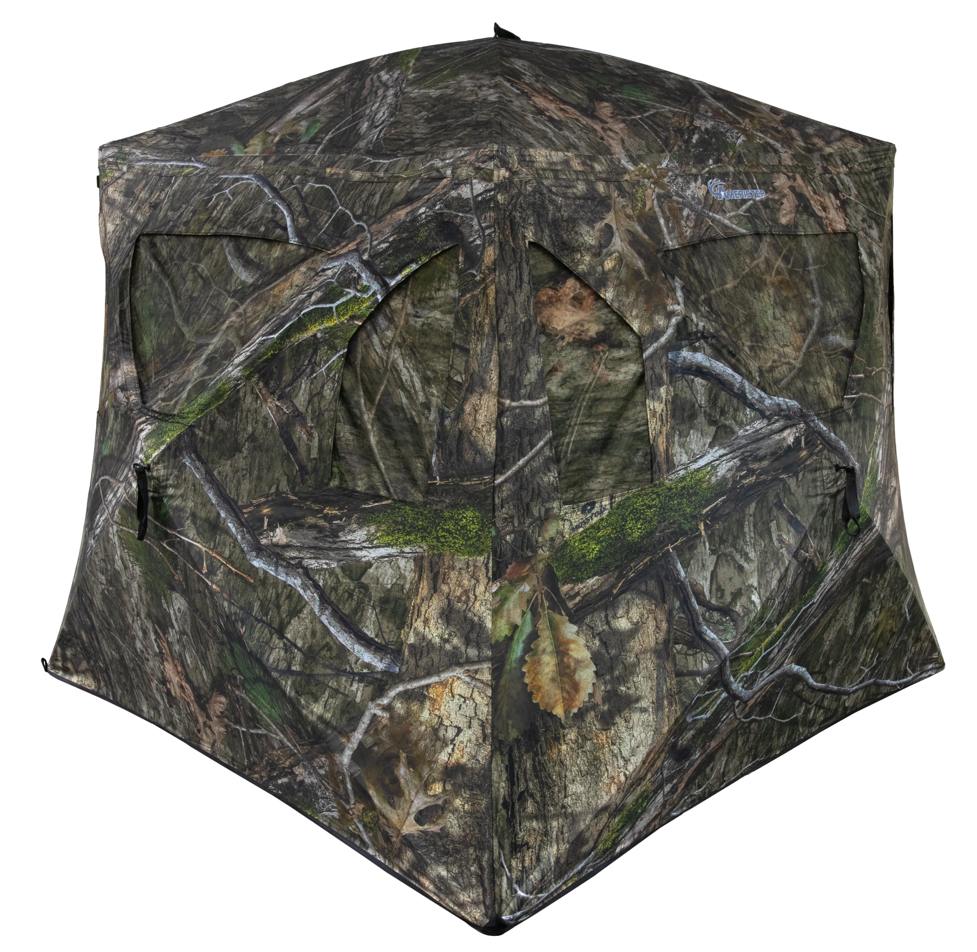 - Wide Bottom design has 61% more floor spacer than previous modelrr- Wide Bottom creates a wider footprint for a more spacious feel and can store gear off to the side or extend chair legs- Silent hook and elastic triangular window system rrr- integrated compression backpack strap carry systemrr- Camo mesh windows rrr- ShadowGuard coating eliminates shadows and silhouettes rrr- Rugged Spider Hub frame for easy setup and takedown rrr- Upper camo brush loops for adding natural foliage rr- Easy-access V-shaped zippered doorrr- Interior mesh storage pocketrr