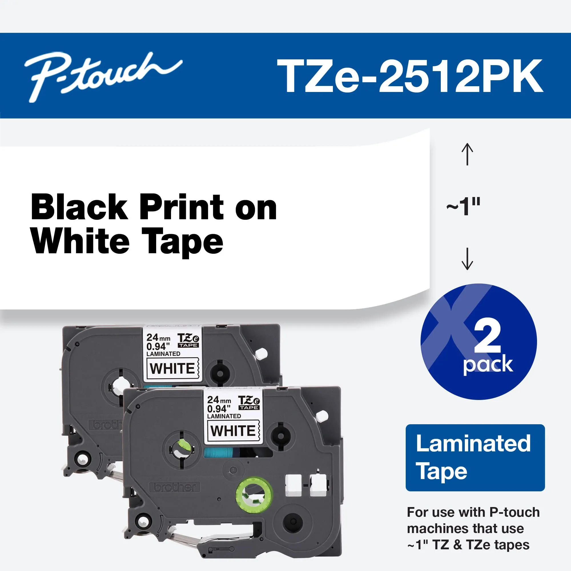 Brother TZE2512PK Black On White Label Tape 0.94" X 26.2 Ft 2 Pack
